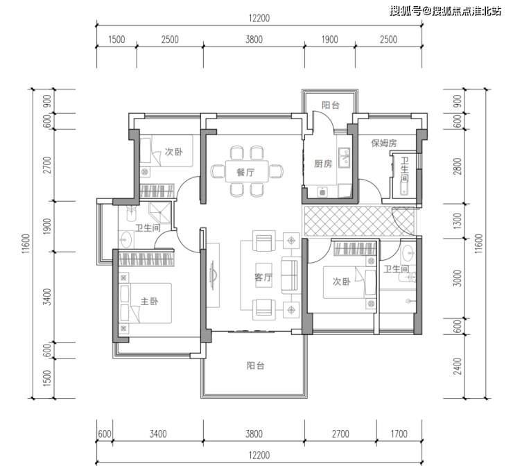 舒适三房,方正实用,两卫设计,正南户型,室室皆带飘窗,双阳台设计, 生活、景观明确分区,2.3m*3.7m宽阔阳台。