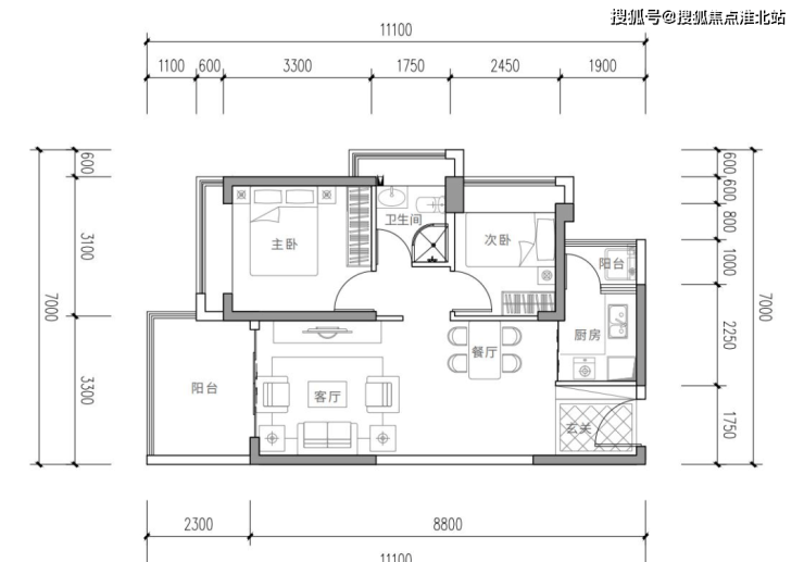 精致两房,紧凑实用,全利用空间,正南户型,动静分区互无干扰,干湿分离,双阳台设计, 2.3m*3.3m阔景阳台,舒心自在。