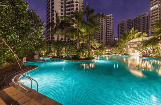 休闲设施齐全:小区内设有天然温泉泡池、室内外双泳池、高尔夫练习场、网球场、儿童游乐场、健身会所等设施,满足全龄段休闲需求。