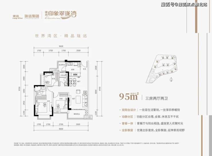 珑远·印象翠珑湾为住宅与商业一体化的综合性健康社区,囊括洋房、商办等多类型产品,打造建面约95-143m²全南向三/四房,其中143m²户型做到了市场上非常难得的双主卧四房三卫设计,满足三孩时代所需。还规划了约4200²情景式商业街区,出门即享繁华。