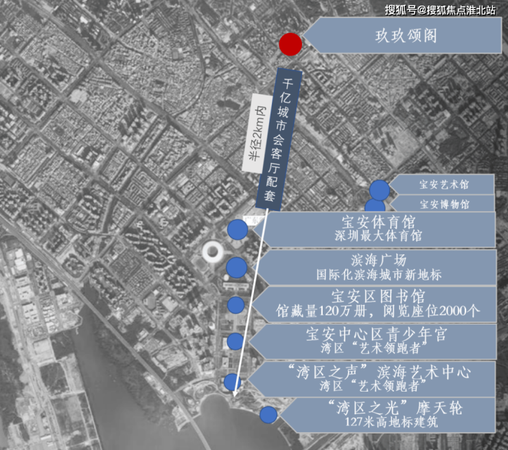 2km范围内悦享千亿大湾区会客厅配套:包括现在已经在运营的“湾区之光”地标摩天轮、欢乐海港、滨海文化公园、宝安体育场、图书馆、青少年宫、演艺中心等