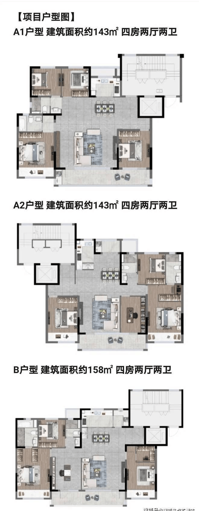 洋房:9-11层,建面约143-228㎡,主打全生命周期宽境布局