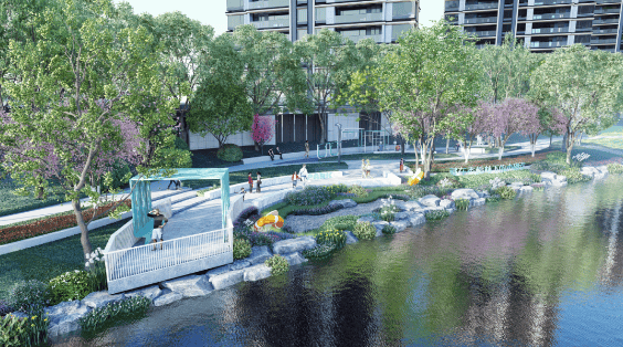 更难得的是,这里被 270°毕家河水岸环绕,下楼即是一线滨河公园。居于家中,既能俯瞰社区内精心打造的“一园三堂”核心景观,又能远眺河岸的四季流转。每一扇窗,都是一幅流动的风景画 。