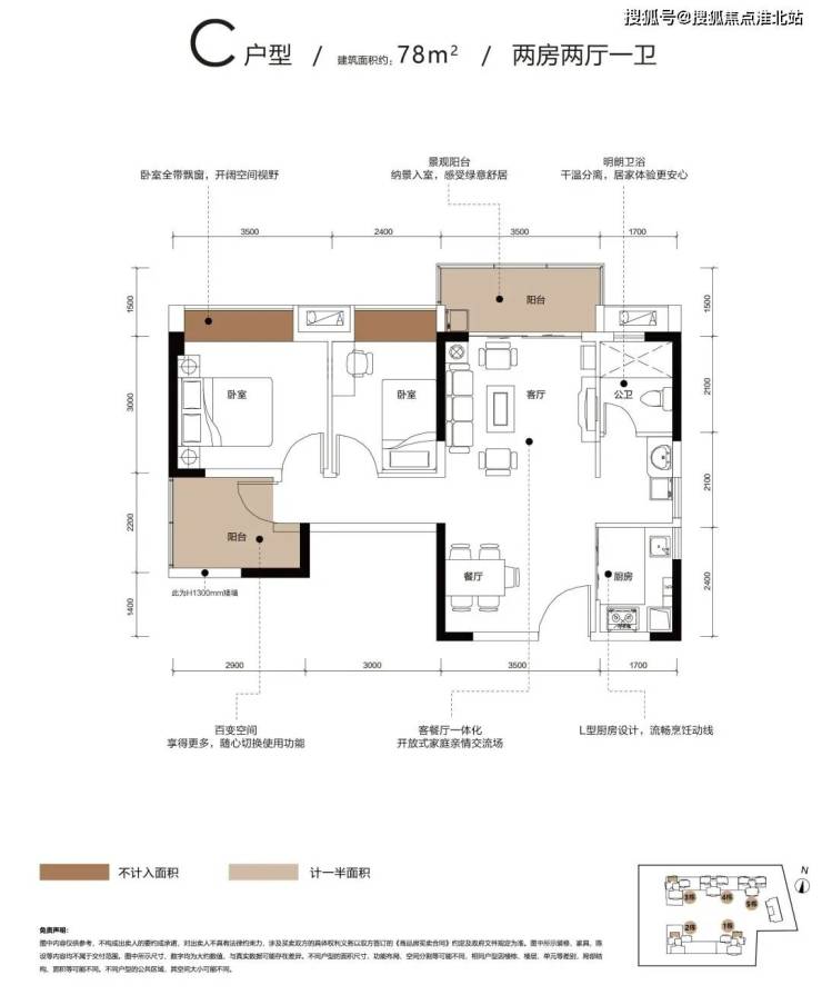 C户型:约78㎡ 稀缺2+1房2厅1卫