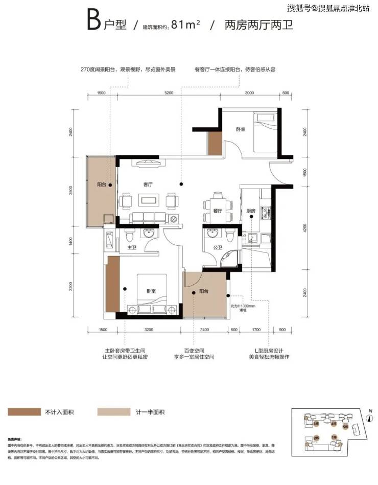 B户型:约81㎡ 实用2+1房2厅2卫