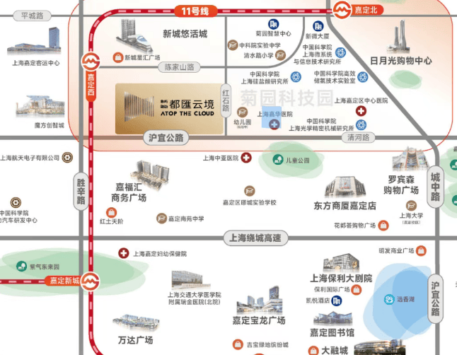 教育配套:直线 3 公里范围内有 27 所幼儿园、11 所小学和 13 所中学,包括中科院上海实验学校、嘉定区清水路小学、民办桃李园实验学校等