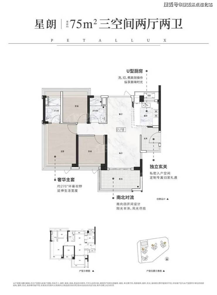 在户型设计上,番禺市桥新房信达繁花里更是展现出了强大的产品力。项目主推建面约75-108㎡的全南向三至四房,使用率可高达120%。建面约75㎡的三房户型,独立玄关设计,可改造成储藏室,提升了收纳空间。南北对流的设计,让整个空间通透明亮,采光和通风效果极佳。奢华主套带有独立卫浴,环幕视野。
