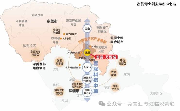 2023年华为重磅落址塘厦,在莞深版图上形成“坂雪岗-九龙山-塘厦-松山湖”科创走廊。继松山湖之后,未来塘厦将以智造龙头总部的磁场效应,集群上下游产业链,虹吸全球尖端人才。宏发·万悦城,正居莞深融合先行区C位,比邻华为塘厦产业基地,多重发展机遇叠加,坐拥区域腾飞未来