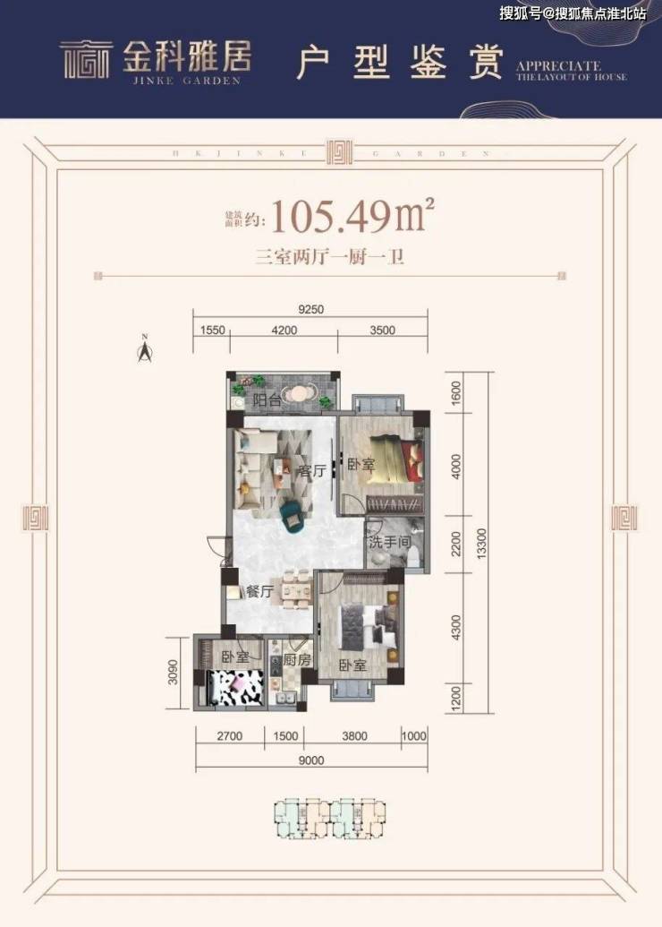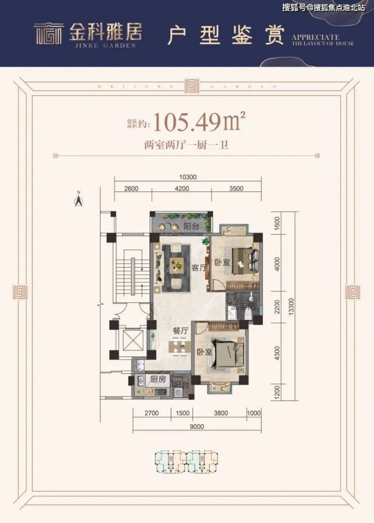主力户型:105.49㎡(2房至3房)