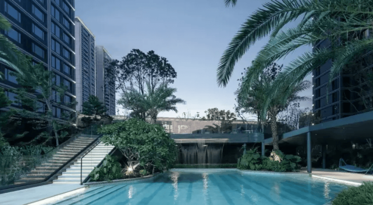 景观设计:由美国 AECOM 团队执笔,运用热带绿植、灵动水景融合海景。