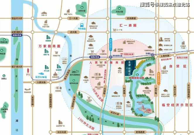 生态配套:项目周边有 800 亩东湖湿地公园、10 公里浏阳河水岸、东沙古井等,生态环境优越,休闲散步十分方便。