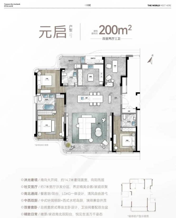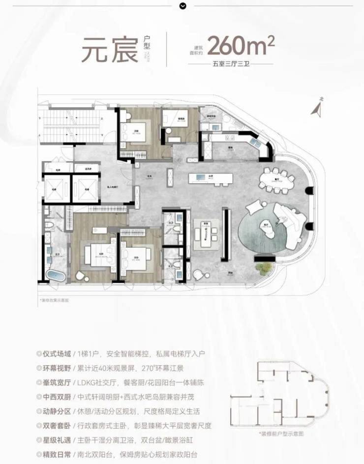 产品规划:建筑面积约200-260平大平层