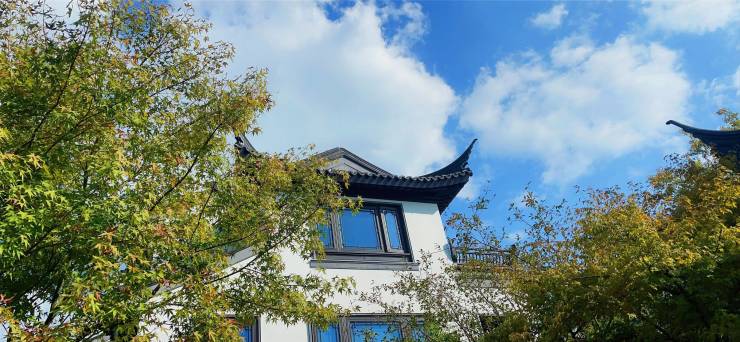 项目深植无锡江南文脉,以苏州退思园与本地寄畅园为造园蓝本,将传统建筑智慧与现代居住需求完美融合。建筑采用古典中式风格,以黑、白、灰、栗色为主色调,粉墙黛瓦相映,戗角飞檐灵动,既摒弃了繁复雕梁画栋的冗余,又通过石材线脚与小青瓦的细腻搭配,还原出中式建筑的庄重与雅致。