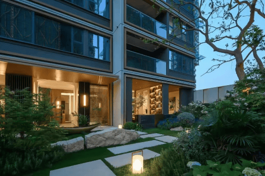 景观设计:果岭式立体堆坡园林,最高约1.5m自然高差,搭配九曲洄游动线,串联九大生活场景。