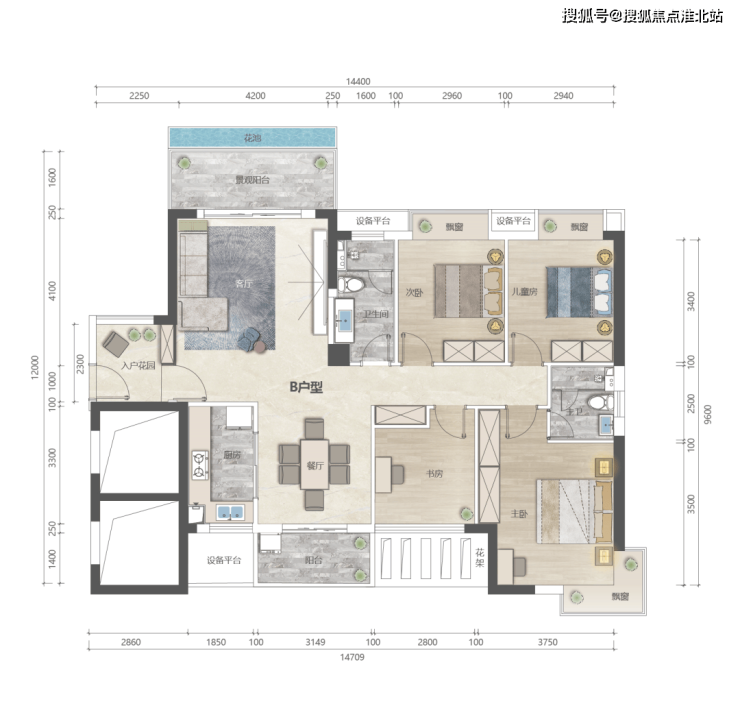 住宅户型:建筑面积约111-141㎡三至四室