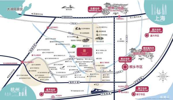 石门镇位于杭州北,40分钟即达杭州,融杭接沪,融杭排头兵,战略长三角。坐拥高速口:沪杭,沪昆高速,申嘉湖高速,练杭高速。融杭最前沿——大二环(交通)通杭“双车道”——临杭大道、乌镇大道 项目距省会杭州市区约50公里,约50分钟内可达杭州市区中心。乌镇大道贯穿南北,临杭大道贯穿东西。
