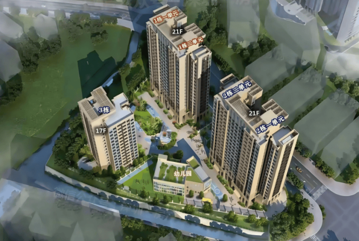 基本信息:由深圳市集泰实业发展有限公司与深圳市福围股份合作公司联合开发。小区占地面积约 1.9 万㎡,总建筑面积约 7.2 万㎡,容积率为 4,绿化率 31%。由 3 栋 17-21 层的高层住宅和一所幼儿园组成,总户数 456 套,车位数 400 个,车位比 1:0.88,产权年限 70 年。