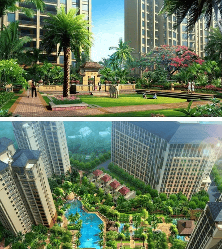 小区配套:有超 1000㎡东南亚风情景观泳池、休闲草地、观景凉亭、景观水系等休闲设施,还有羽毛球场,以及一楼架空层内的台球室、乒乓球室、健身房等运动设施,同时配备儿童乐园。小区采用人车分流设计,还设有 5.5 米挑高五星酒店级入户大堂。