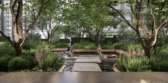 景观园林:双水系环抱,打造“艺术家乐园”“芳瑶馥郁”“悦然氧吧”等主题景观。