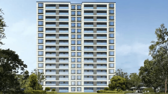 南向紧邻河道,为实现滨河景观最优化,楼栋沿河横向分布,双排楼栋排布,中庭景观设计,园内景观空间最大化分布,北侧楼栋直面中庭景观,南侧楼栋奢享一线滨水景观