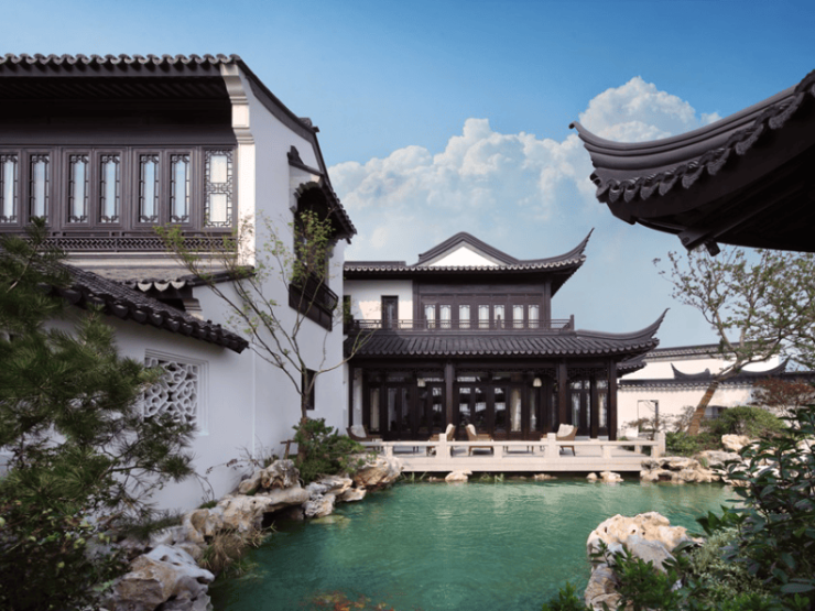 园林设计:以 “虞派园林” 为核心,融汇常熟十园精髓,采用 “三街四巷十园” 布局,运用叠石假山、碧潭飞瀑、廊桥亭阁等景观,营造出 “虽由人做,宛自天开” 的自然氛围,还融入了虞山画派开山祖师黄公望的《写山水诀》,以香山帮非遗技艺雕琢园林。