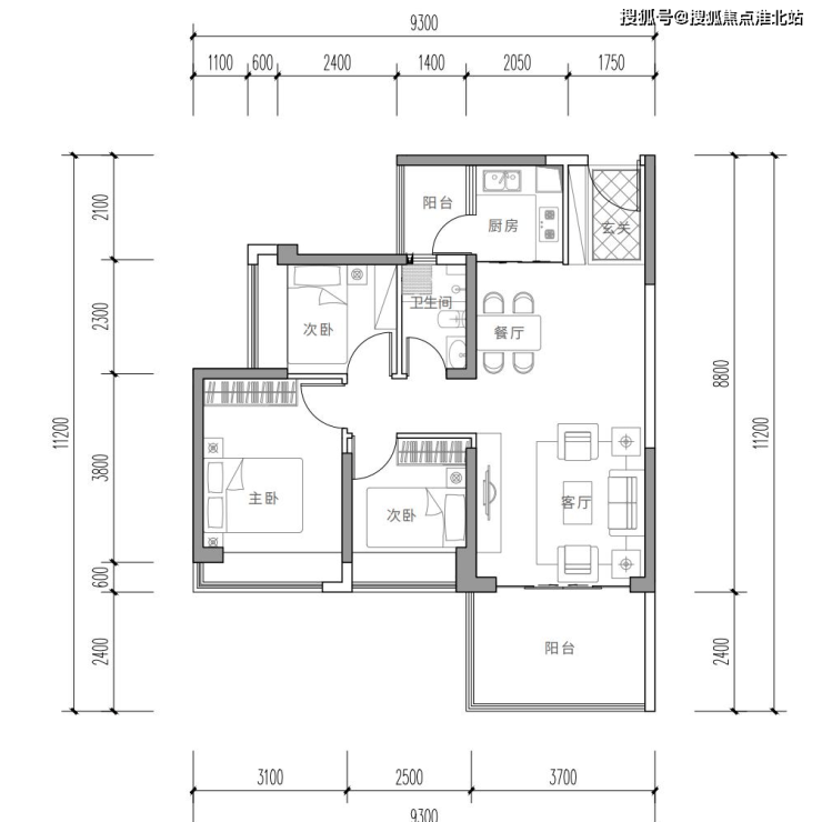 精致两房,紧凑实用,全利用空间,正南户型,动静分区互无干扰,干湿分离,双阳台设计, 2.3m*3.3m阔景阳台,舒心自在。