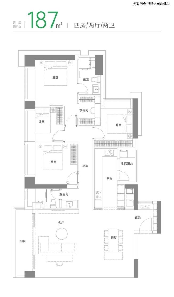 建面约187m² 四房两厅两卫