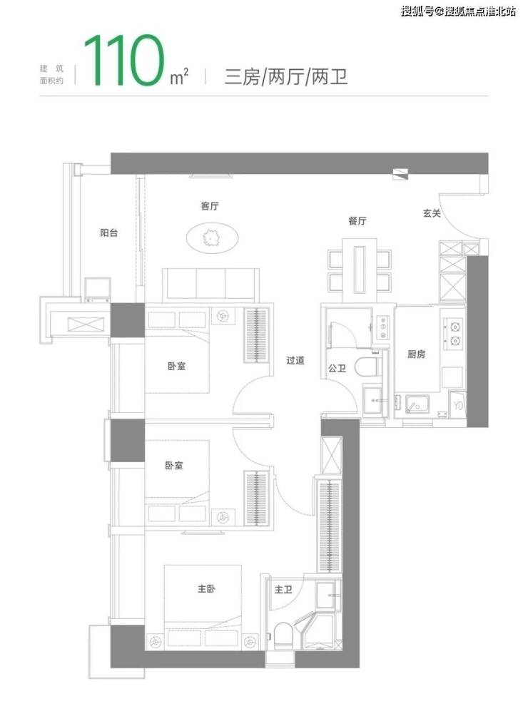 建面约110m²三房两厅两卫