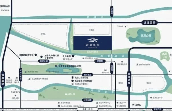 直线距离约1.3公里即是中环西线,无缝对接昆山各区域,萧林西路、城北西路、红杨路等,畅享多维交通路网。