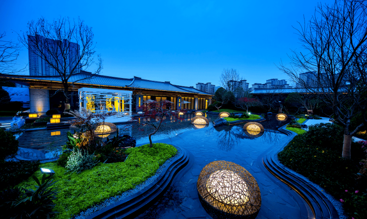 建筑特色:首创 “三进制园林” 布局,灵感源于江南名园寄畅园,打造了狭长水系景观,有 “园眼”“收腰” 等设计,园林空间旷奥交替。还打造了近 4 万方围合式园林,以中式景观结合现代设计理念,呈现唐风宋韵的现代江南园林。
