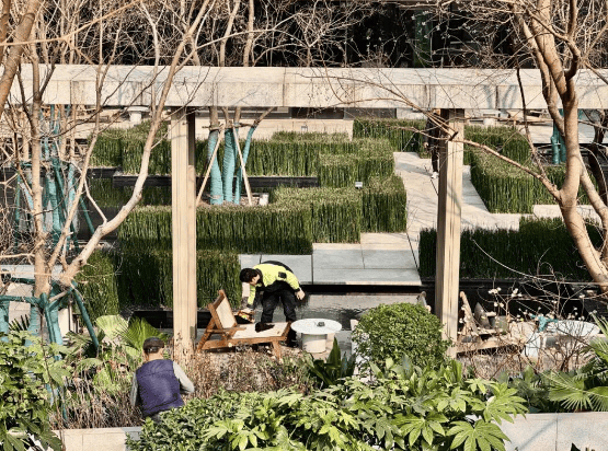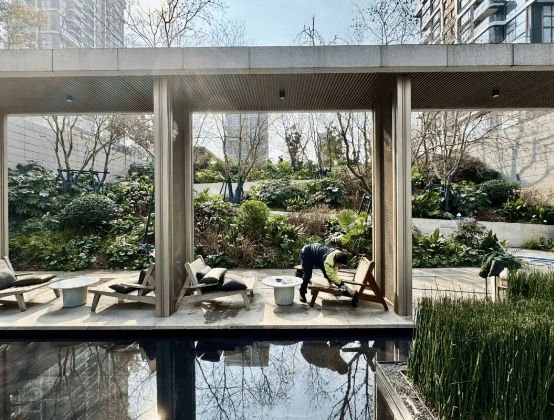 除了吸睛的外立面之外,中庭景观也非常漂亮,且物业服务非常到位,有专人每日进行维护,修缮。
