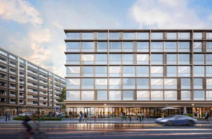 建筑设计:高层住宅外立面采用进口蓝眼睛石材、玻璃、浅香槟金和深灰色铝板幕墙组合,设备平台用深色格栅做隐形处理。合院为中式设计,采用土耳其白砂石材砌墙,法国进口陶土瓦和深灰色定制铝板打造坡屋面和挑檐,配备德国进口旭格系统门窗。