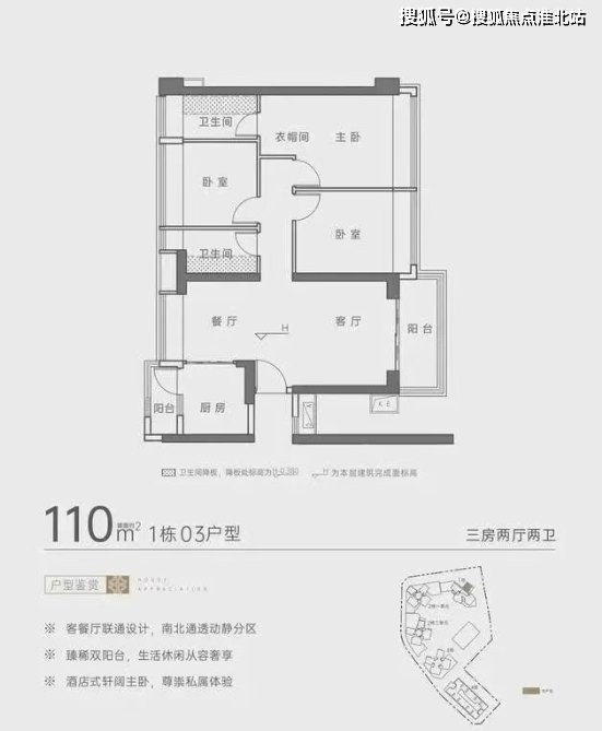 住宅户型:有 85㎡的 2 房 2 厅 1 卫,110-114㎡的 3 房 2 厅 2 卫,130㎡的 4 房 2 厅 2 卫,140㎡的 4 房 2 厅 3 卫等户型,部分户型南北通透,通风采光良好。