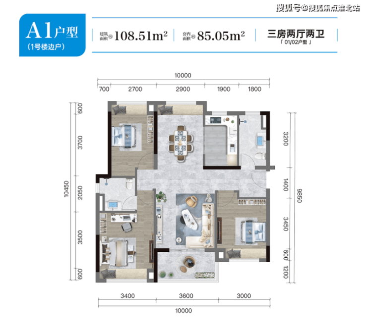 户型面积:主推建面约 104-110㎡的三房两厅两卫户型,空间布局合理,功能齐全,能够满足不同家庭的居住需求。
