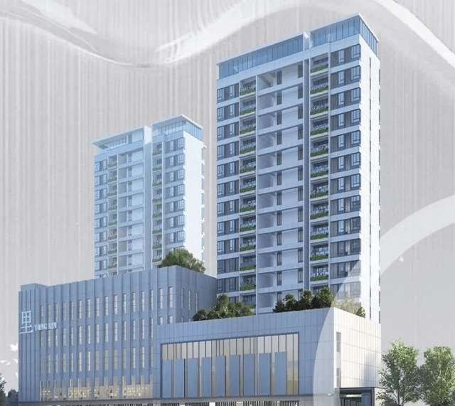 指标:占地面积 6587.53㎡,总建筑面积 14210.18㎡,容积率 3.0,绿地率约 40%。有 2 栋 18-19 层住宅及部分商业,共计 132 套安居房,机动车停车位 191 个(地上 12 个,地下 179 个)。