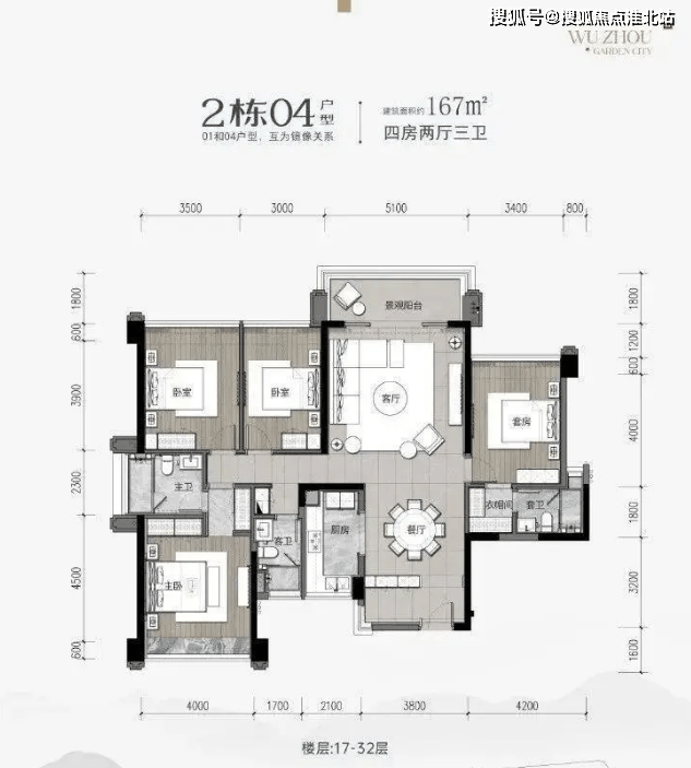 167m²:四房俩厅三卫