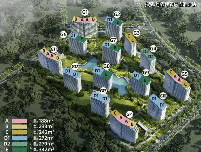 楼栋与户型:项目总栋数共 14 栋,首推楼栋 1、2、3、6 号楼,推出了 188-610㎡的多种户型,其中包括 342㎡、550㎡和 610㎡的超大户型。