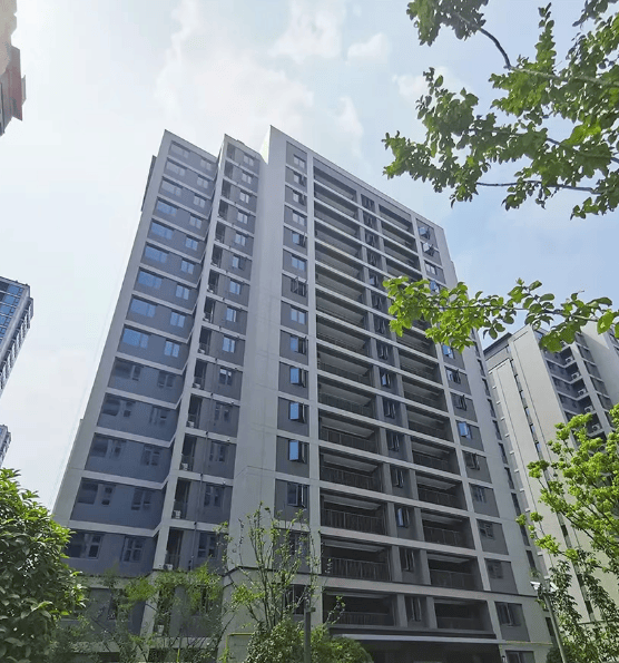 建筑设计:特邀知名建筑单位柏涛 PTA 设计,沿袭国际高端建筑调性,大面积玻璃幕墙搭配深灰色横向线条,远观层次分明,近看细节丰富。