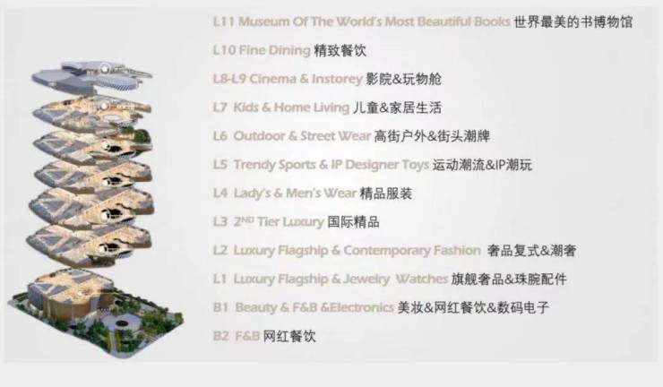 由裙楼、双塔楼、地下商城以及城市广场组成,将建设集奢侈品商场、高端餐饮、影院娱乐、德基美术馆、酒店式公寓等为一体的高端大型城市商业综合体。