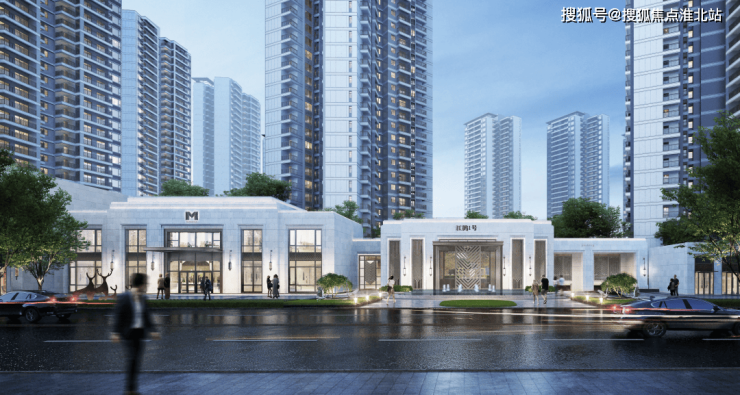 小区主设置的酒店式入口大堂和销售中心,右侧为车行通道,直通地下车库出入口,中间小区大堂为人行出入口,并设有酒店式大堂落客区,强调仪式感、尊贵感。通过小区大堂后,进入大堂内院,使之成为大堂与小区中央景观之间的过渡空间,景观显得更有层次感。