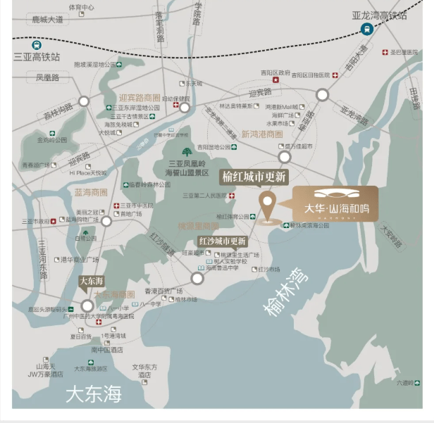 大华·山海和鸣是位于三亚吉阳区榆亚路的高端住宅项目,主打一线海景与低密生活。项目地处榆林湾内湾,近海约50米,南向避风,拥有风平浪缓的居住环境,同时背靠凤凰岭,近邻600亩红树林公园,周边六大公园环绕,生态资源优越。