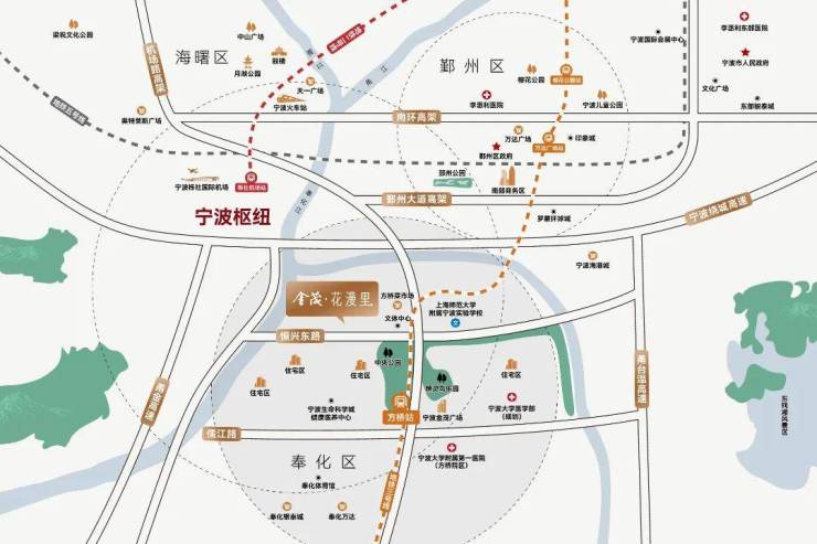 融入主城生活圈,赋能美好家速度!位居宁南核芯的金茂·花漫里,高效联通宁波枢纽,近邻轨交3号线方桥站,8站南商10站万达,即刻畅达鄞州中心区;商务出差或接待,机场快速路等立体交通疾速畅达宁波火车站、机场,打开宁波人居便捷新体验。