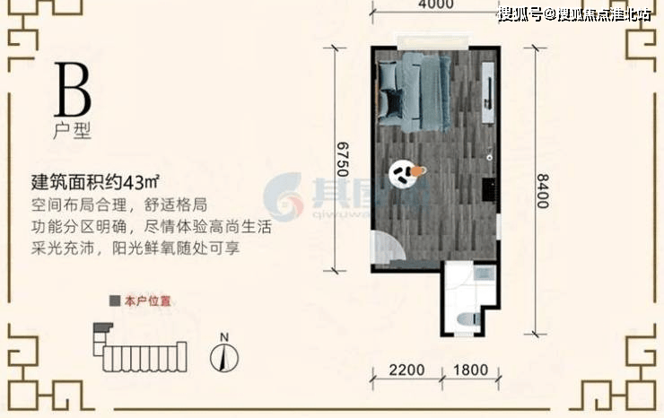 B户型图-建面约43.00㎡-开间