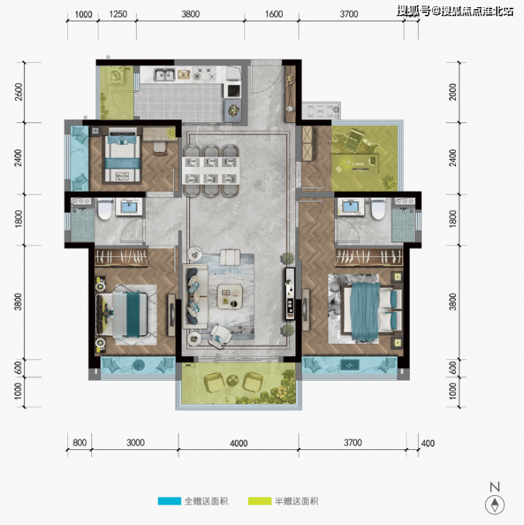 建面约143㎡全能双主卧套房,奢配双主卧+独立卫生间,居住者的生活品质瞬间提升,且四开间朝南,采光面十分充足,可以完美安放三代同堂的幸福时光!