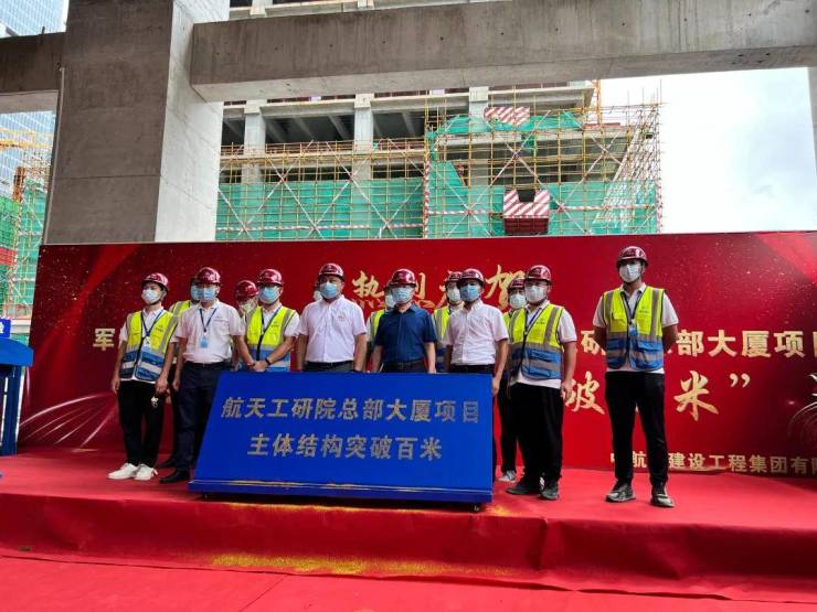 7月6日,中航天建设工程集团有限公司二公司深圳航天工研院总部大厦项目举 办“主体结构突破百米”仪式。深圳工研院党委副书记、副总经理刘瑞华,中航天集团党委委员、总工程师赵记军出席仪式。