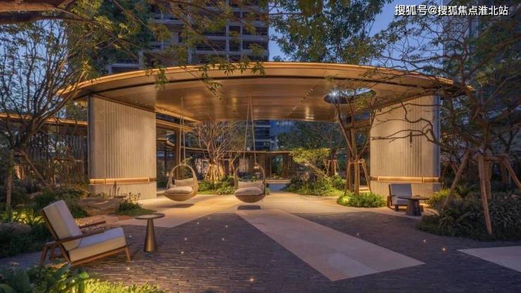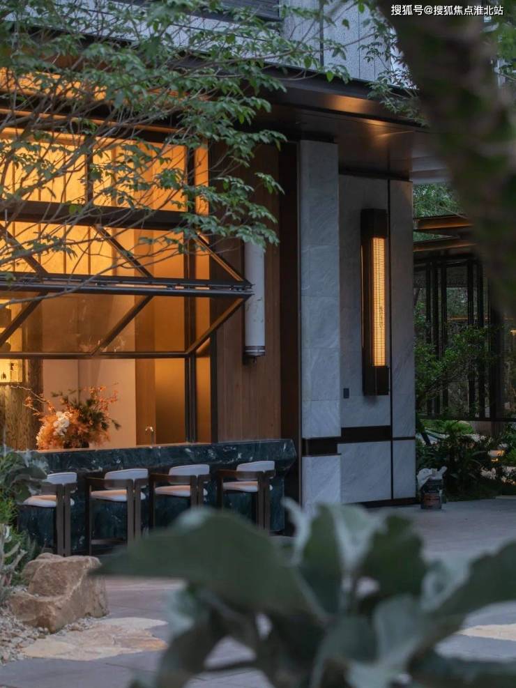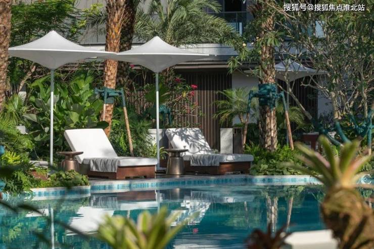 真正进入园林,第一眼便是潮思水院,这里还原海南三亚亚迪逊度假酒店的造景手法,花费约200万打造林下水院景观,带来一种归家度假感。