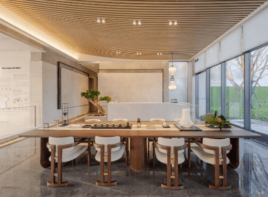 园林景观:打造全嘉兴首个宋风立体山水园林,以《嘉禾八景图》为蓝本,融入“南湖烟雨”等景观元素,还原江南水乡意境。示范区实景呈现度高,亭台楼阁、水景照壁等细节考究,充满宋风雅韵。