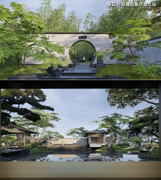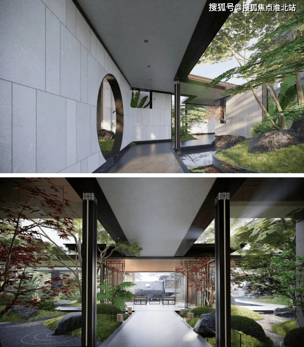 空间布局:一进山水院以叠石奇景、精巧花木为主,营造如居山中的归家体验;二进镜水院以水景、曲桥、角亭为主,展现中式生活特色园林空间。此外,项目园林还以环绕式连廊、点景亭台、曲桥竹径,将山水园境串联,一步一景。