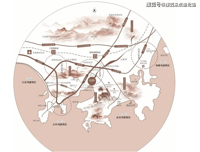 交通干线:紧邻三亚旅游主轴榆亚路,可快速通达大东海、亚龙湾、三亚湾、海棠湾四大湾区,实现三亚半小时旅居度假生活。