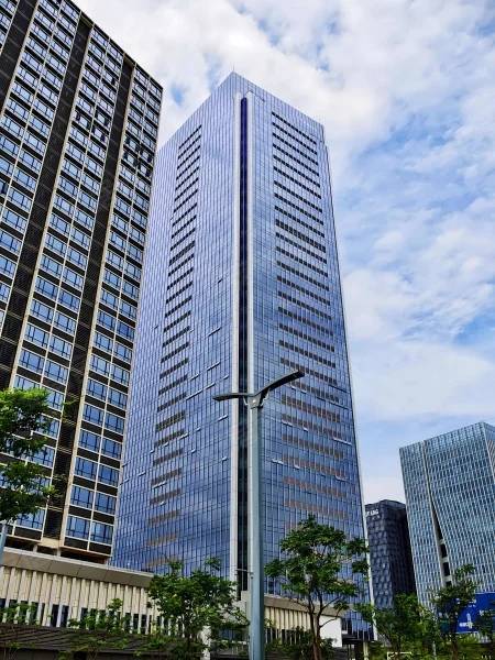 建筑特色:主力主楼是约 150 米的地标写字楼,采用超白露珠翼全景玻璃幕墙,重塑仲恺天际线。写字楼配备 13 台精装电梯,平均每台仅服务 2.5 层,辅以智能分流设计,标准层高 4.2 米,室内格局可自由组合,还预留了独立洗手间及排烟管道。